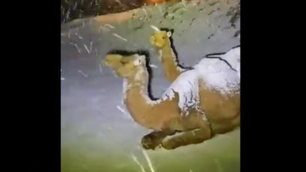 مشاهد لا تصدق من السعودية.. ثلوج على ظهور الجمال